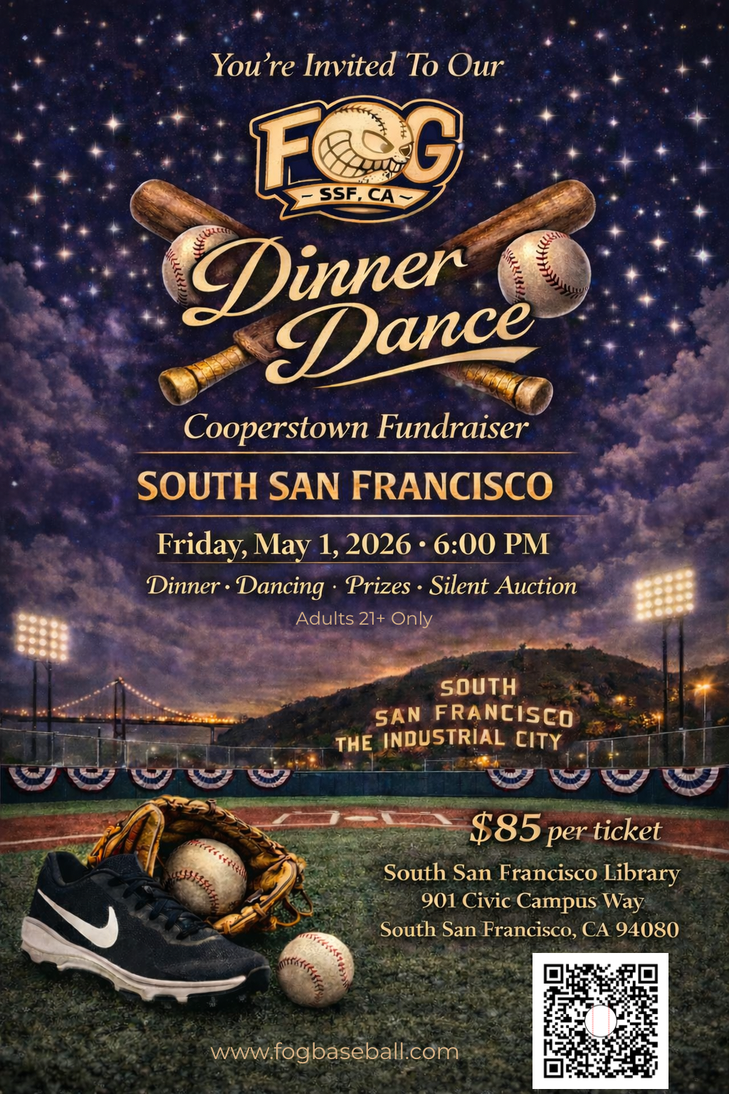 Each year the SSF Fog hosts a 21+ dinner fundraising event to help get our team to Cooperstown, NY. This popular event introduces the players to the community and has become the talk of SSF. This fun night will feature great food, drinks, DJ/dancing, silent auctions, and much more….